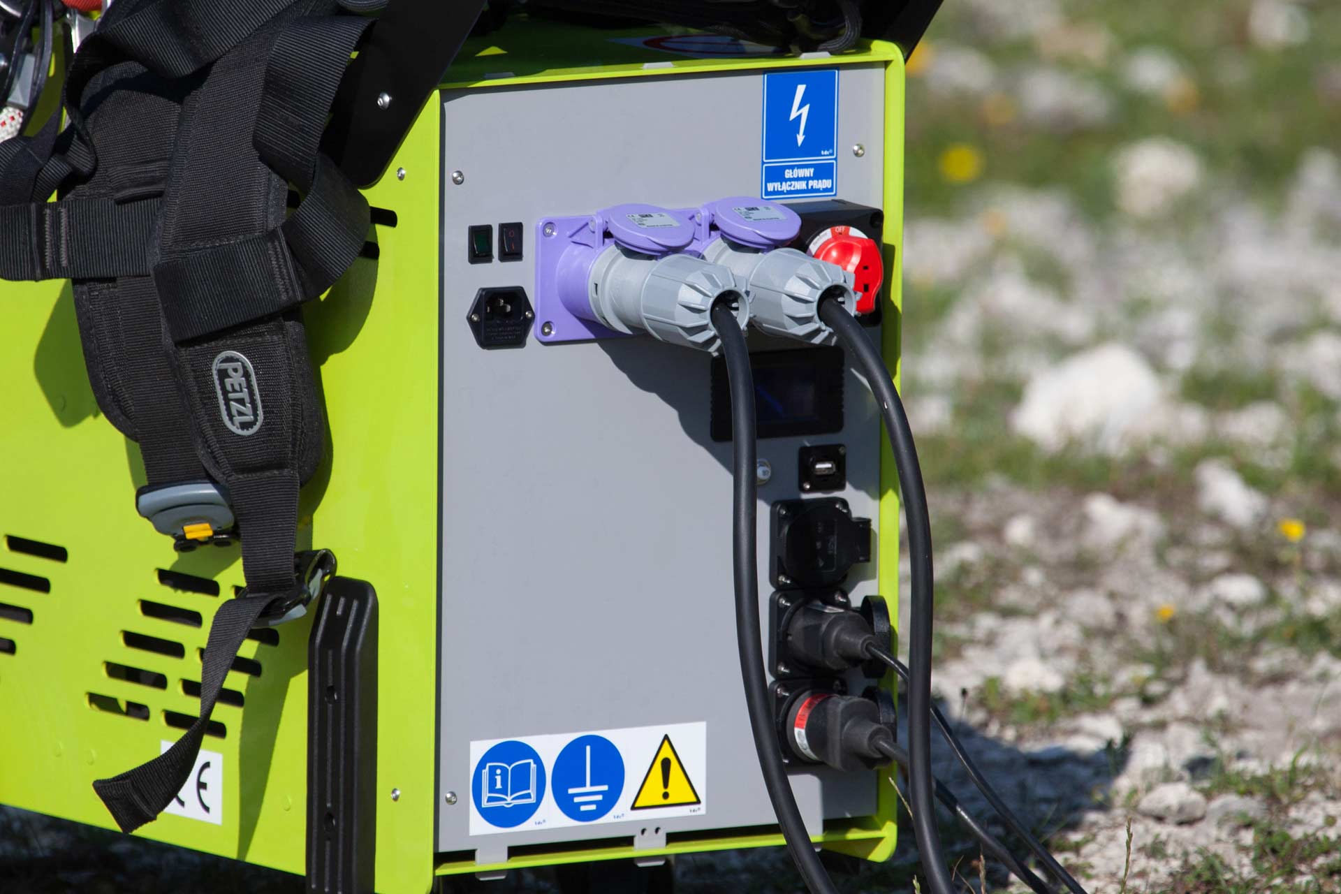 Zestaw zawiera akumulatorowy magazyn energii o pojemności 3,2 kWh z wbudowanym inwerterem o mocy 2kW oraz dwa przenośne panele solarne po 400W każdy z kablem o długości 10m. Takie rozwiązanie umożliwia ustawienie paneli w zasięgu promieni słonecznych na określony czas w dowolnym miejscu podczas gdy generator znajduje się wewnątrz budynku lub pojazdu.