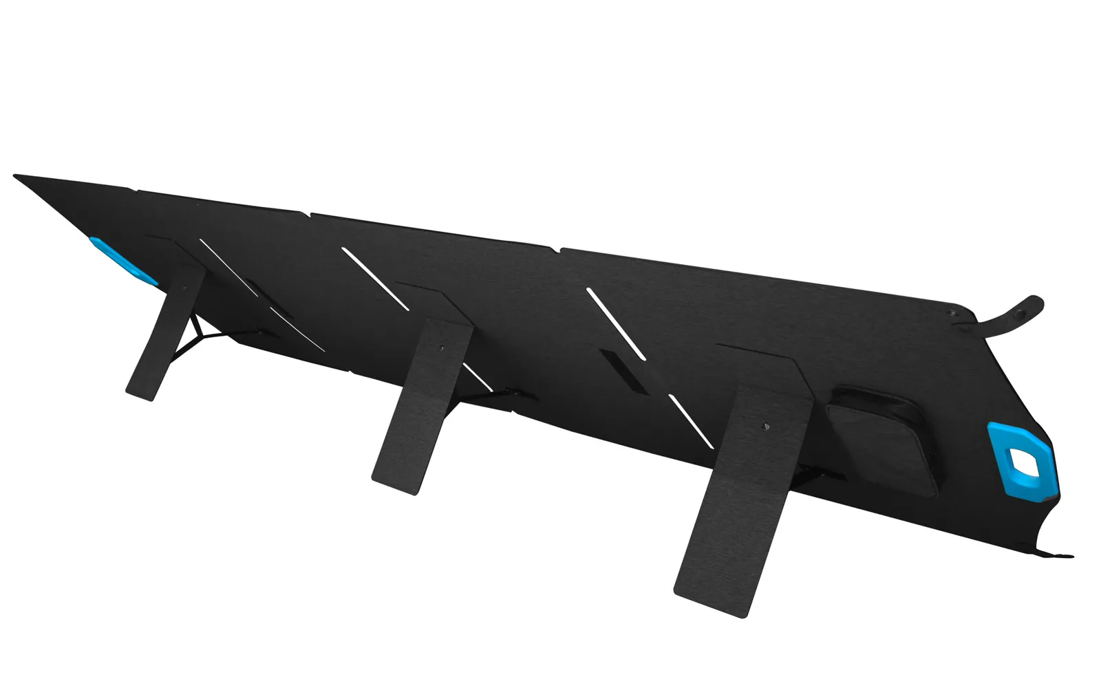 Urządzenie wyposażone jest w 4 elastyczne, składane panele słoneczne po 300W każdy.