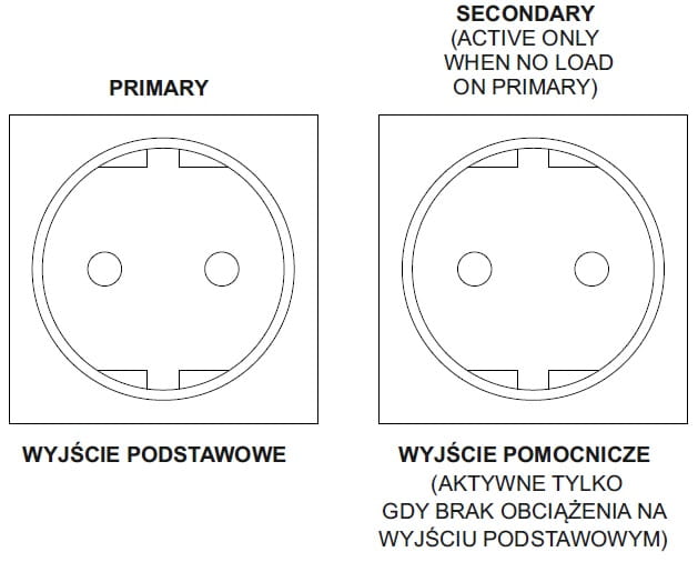 Maksymalna moc sytemu to 3kW, przetwornica posiada wyjście priorytetowe "1", na którym zawsze jest napięcie oraz wyjście zależne "2", które włączane jest gdy na wyjściu nr "1" nie jest pobierana energia i wyłączane gdy energia znowu jest pobierana z wyjścia "1".